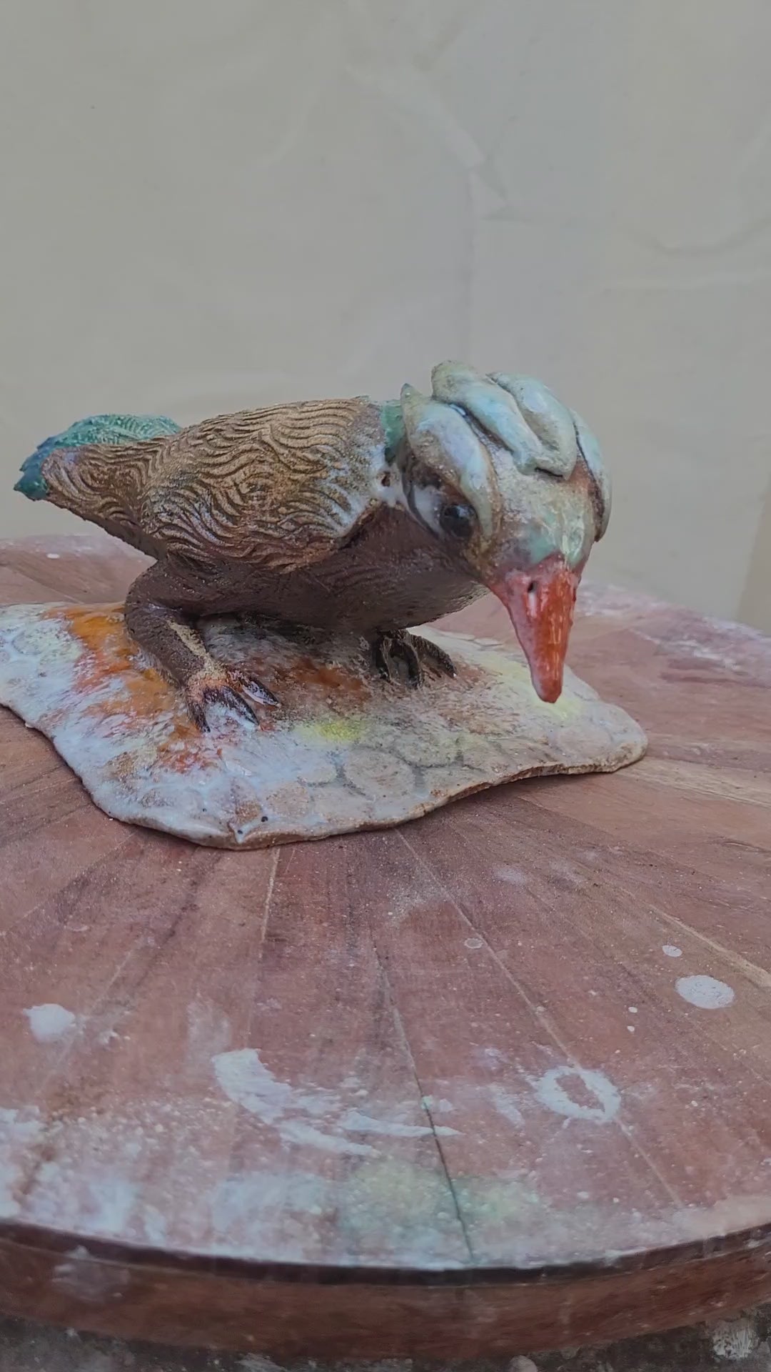 6"x6"x7" High fired sculpted bird outdoor ceramic fencepost toppers.