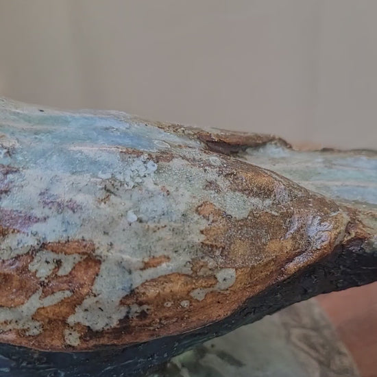 6"x6"x7" High fired sculpted bird outdoor ceramic fencepost toppers.